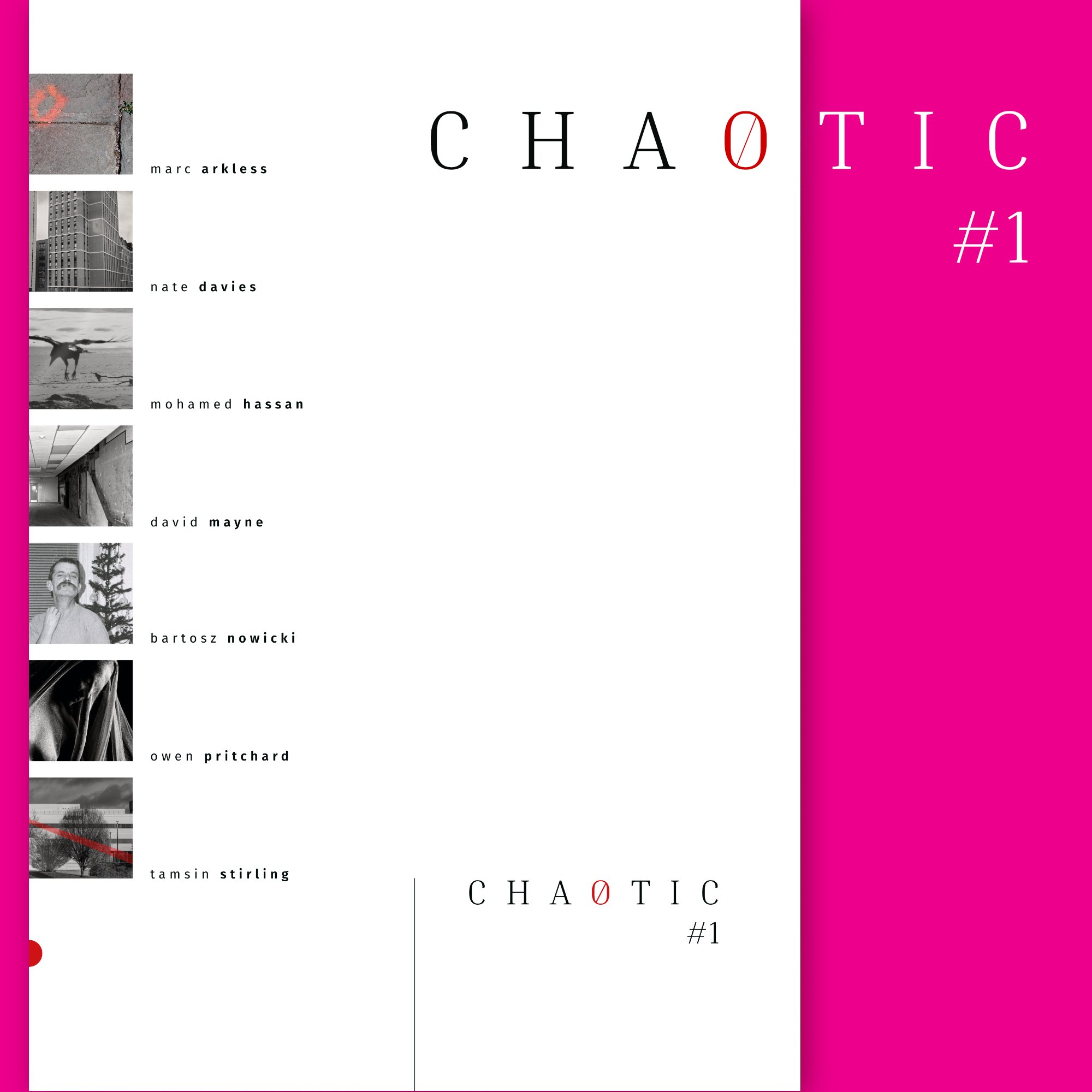 The first issue of the annual CHAOTIC group publication featuring new photography projects in their early stages by seven photographers. This printed publication forms one half of the CHAOTIC project; with live online discussion sessions with the photographers forming the concluding half.